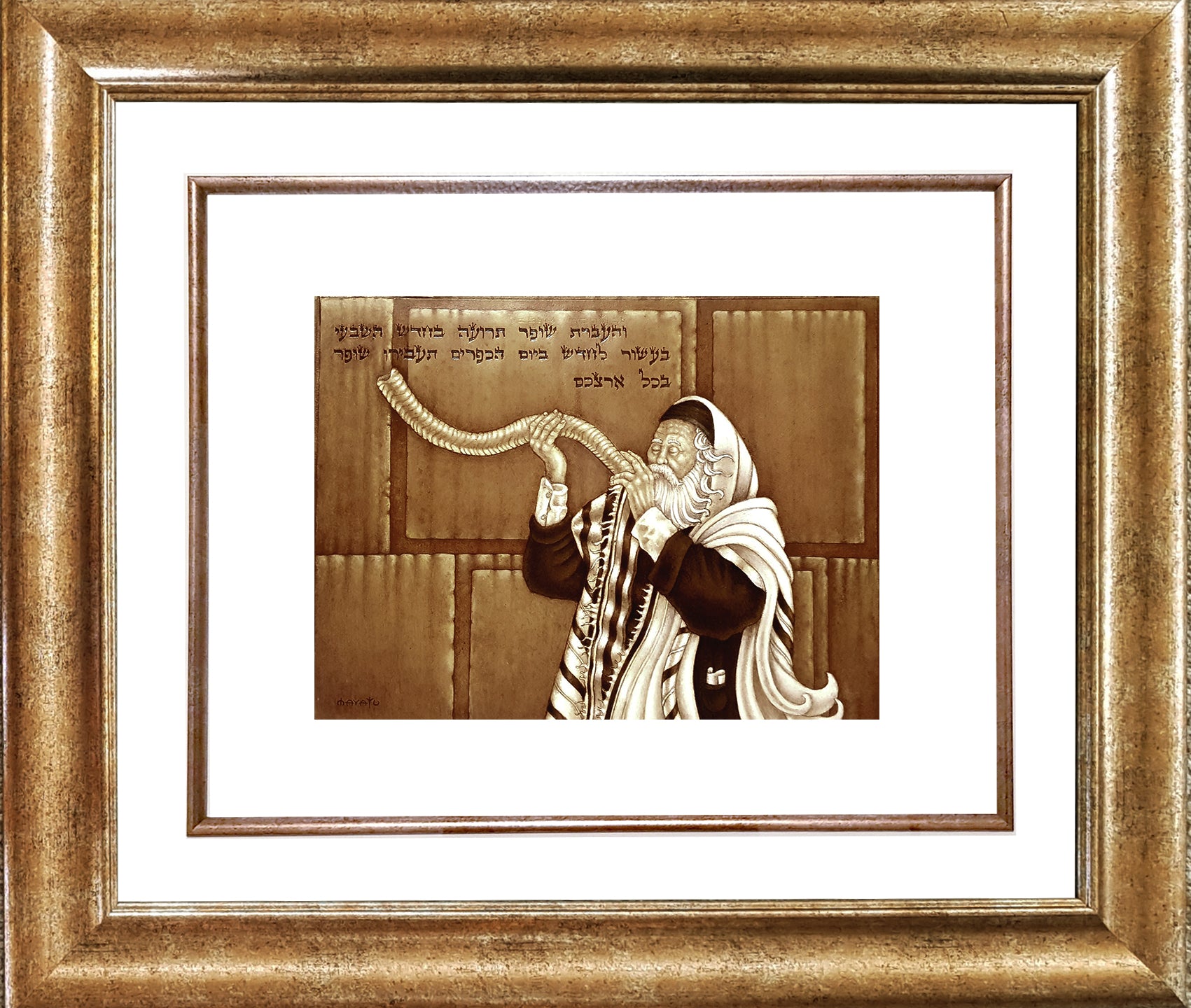 The Shofar represents freedom. The right hand above the left, represents that in order to be truly free our desire to give must be above that of receiving.