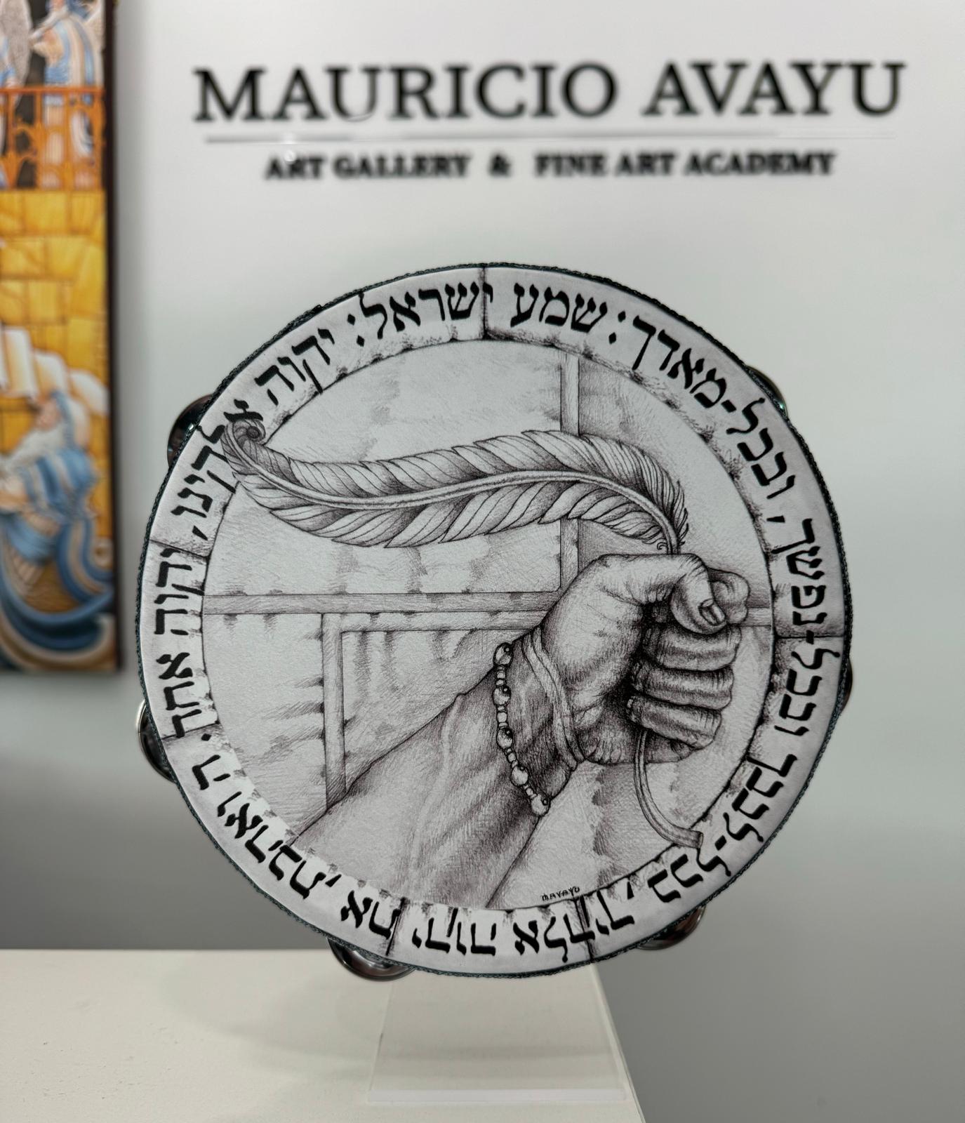 Discover a work of art and faith with this unique tambourine, designed to capture the power of knowledge and devotion. This instrument is hand-painted with a powerful image: a hand holding a quill with strength and determination, symbolizing the act of writing and the power of the divine word. Named "The Strength of the Torah", this tambourine represents the deep connection between the Jewish people and their sacred texts.