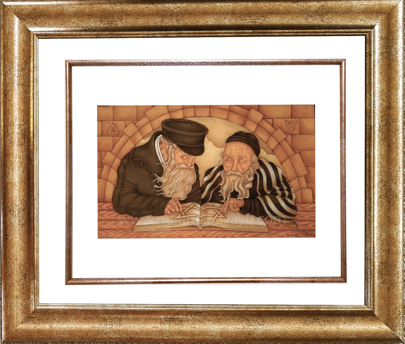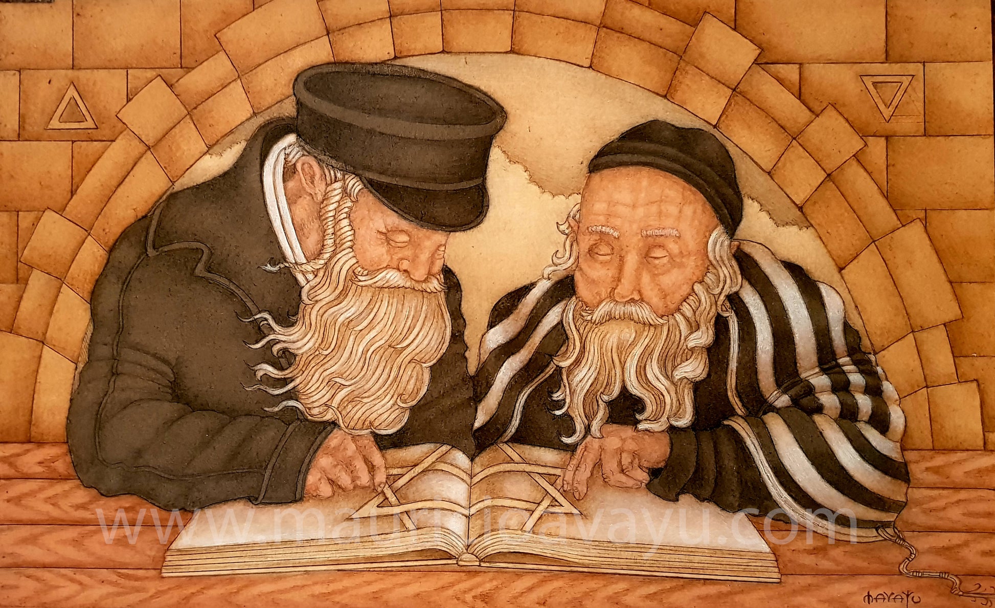 On the right side there is a triangle whose base is up, graphing what is "Large above and small below". Together they share a book, which shows the union of both illustrated in a Magen David.