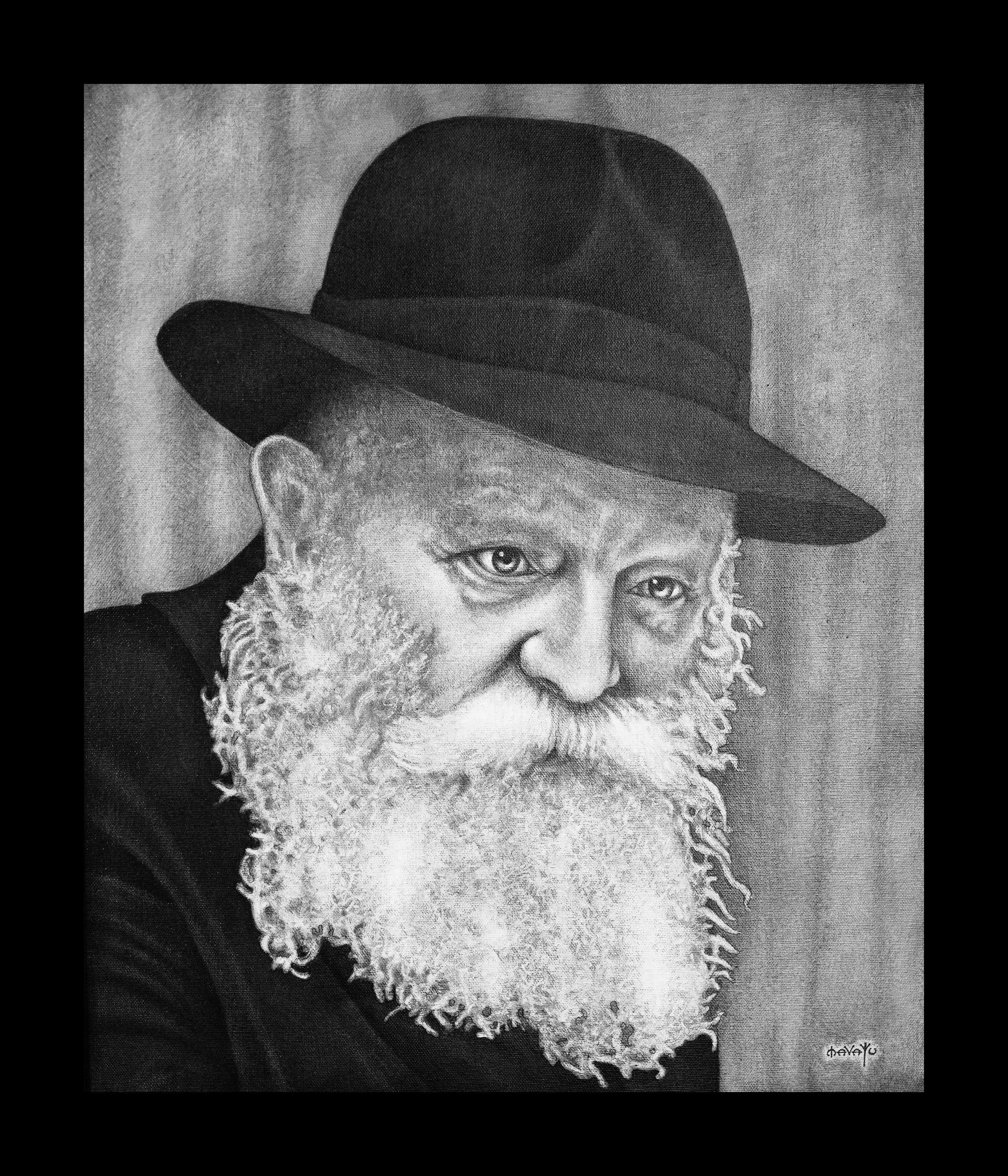 "THE REBBE IN BLACK & WHITE" / 20"X 24".