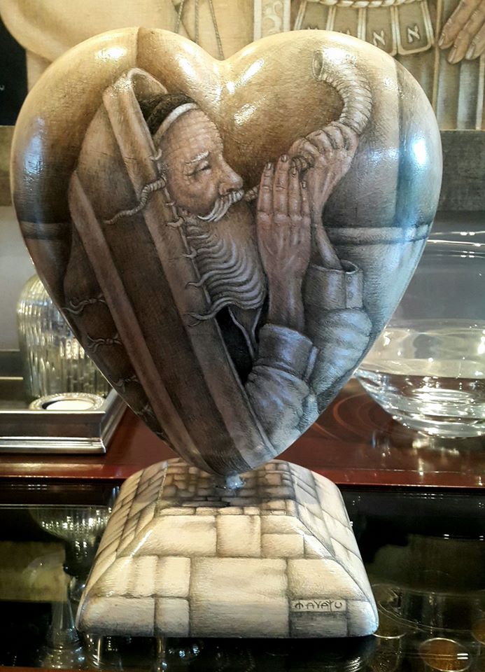 Oil painted 3D Fiber Heart , 12 inches tall x 10 inches wide .